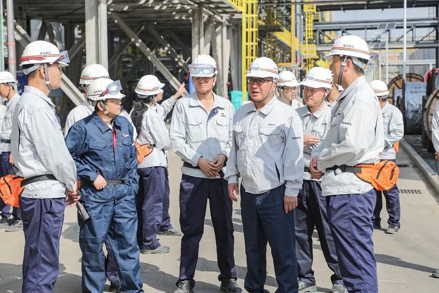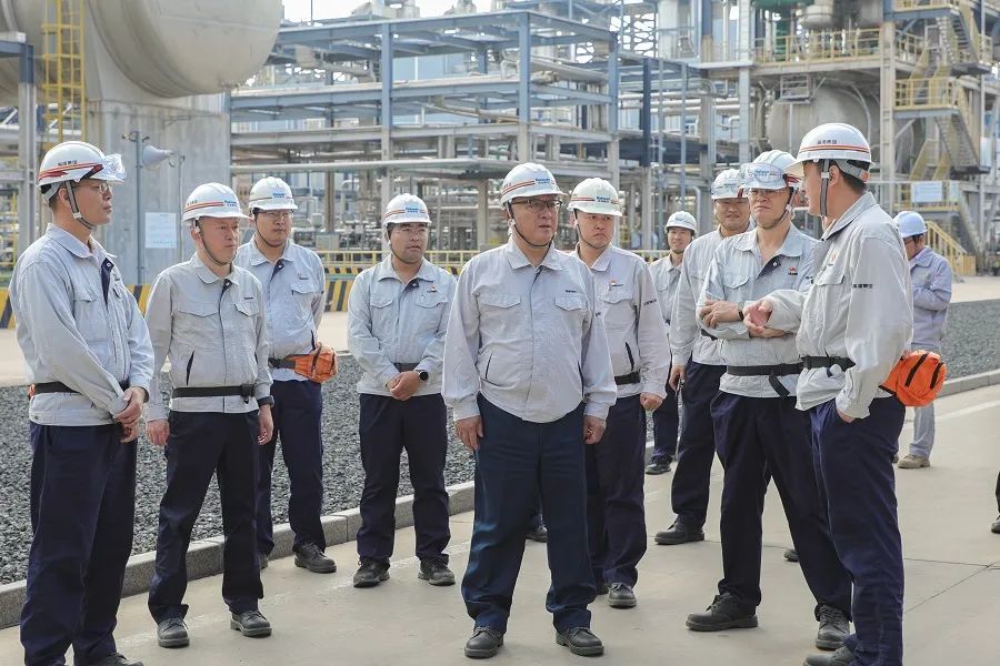 在海湾化学,李明深入现场查看了主要装置运行情况、项目建设进度等,听取了企业关于近期生产经营、安全环保、市场营销等工作汇报,并提出具体要求。