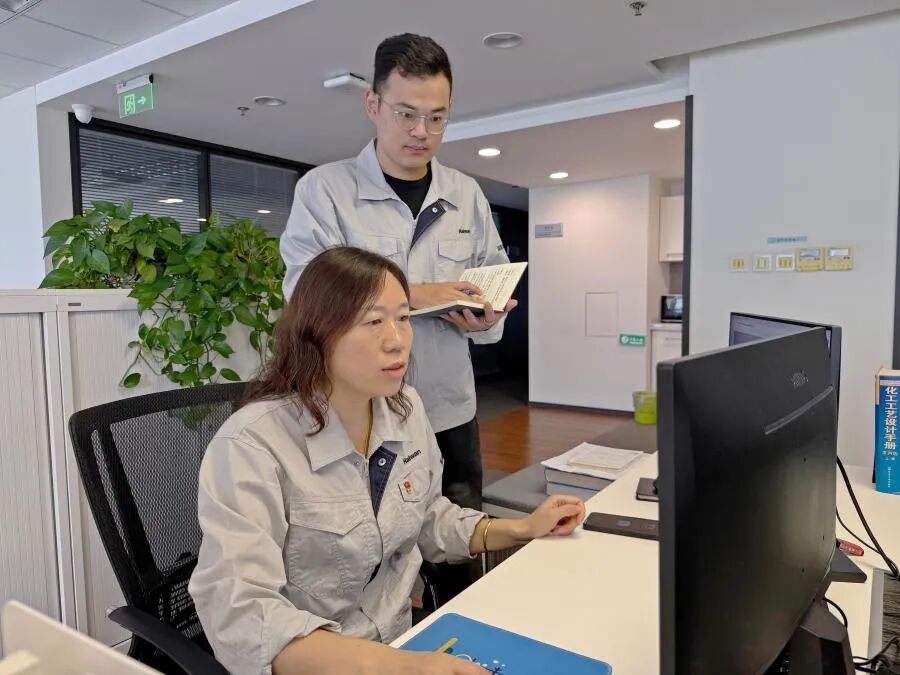 幸运的是,我遇到了我的良师——工艺一室主任工程师李平师傅,她不仅是我工作上的引路人,更是我心中的榜样。当我还在为如何开始而手足无措时,师傅并没有急于让我“硬啃”复杂的项目,而是耐心地告诉我:“先看看精细化工和石化设计的相关标准,不用背得很细,先知道遇到问题该从哪本标准里去找就行,这些需要时间和积累。”这一句话让我豁然开朗,也让我找到了学习的方向。