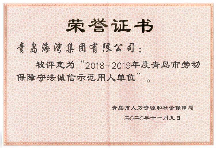 近日,青岛市人力资源和社会保障局公布《2018-2019年度青岛市劳动保障守法诚信示范用人单位》,爱游戏网及其所属企业海湾化学、海湾精化、碱业发展等共15家被评为“守法诚信”用人单位。